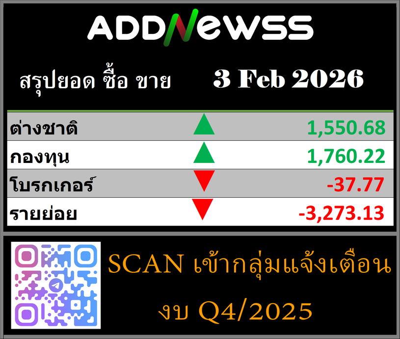 🔥🔥สรุปยอด 🟢ซื้อ🟢🔴 ขาย🔴 📅03/02/2026 📅 2026-02-03 17:26 ✎ administrator 🗇 SUM 👍 - แชร์โพสต์นี้ 🔥🔥สรุปยอด 🟢ซื้อ🟢🔴 ขาย🔴 📅03/02/2026
