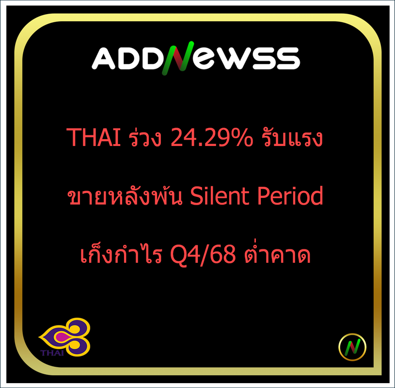 --THAI ร่วง 24.29% รับแรงขายหลังพ้น Silent Period เก็งกำไร Q4/68 ต่ำคาด