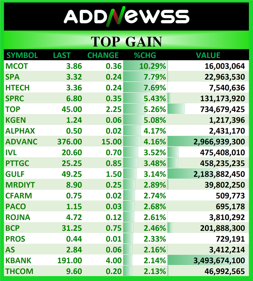 ADVANC : 🟢+15.00 ฿2,966,939,300