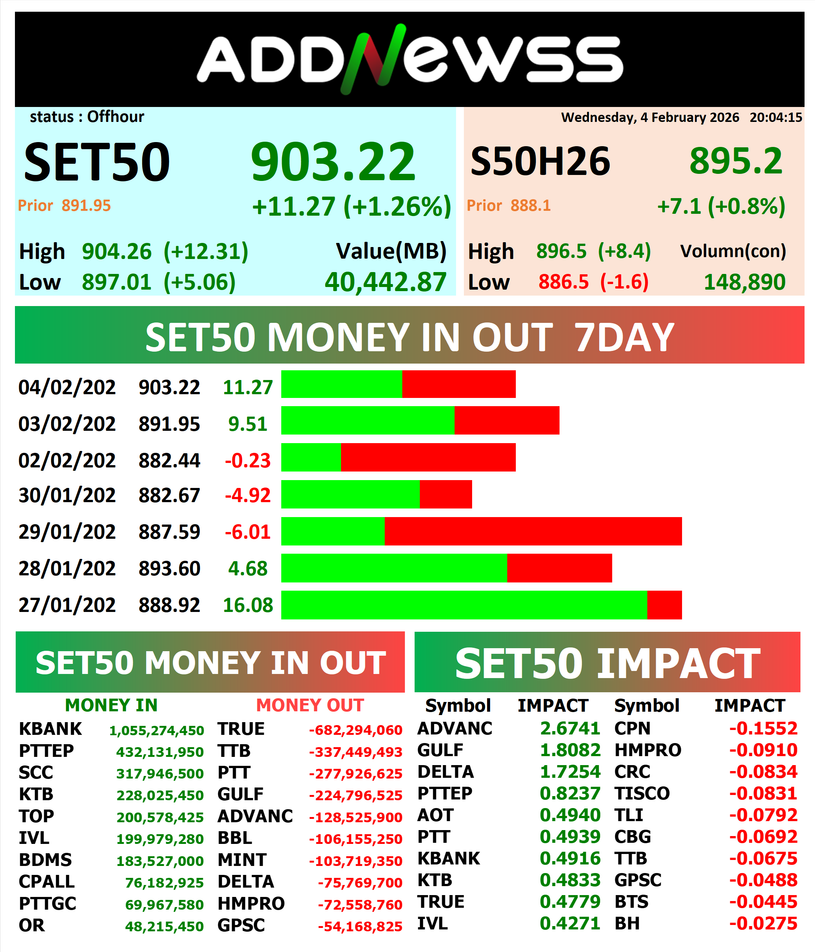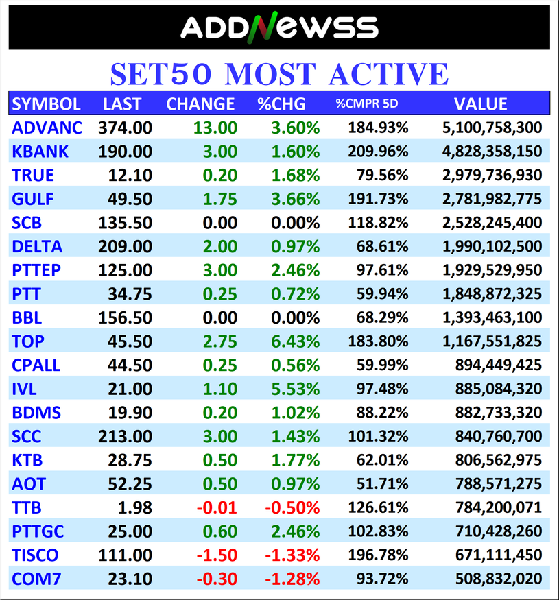 ADVANC : 🟢+13.00 ฿5,100,758,300