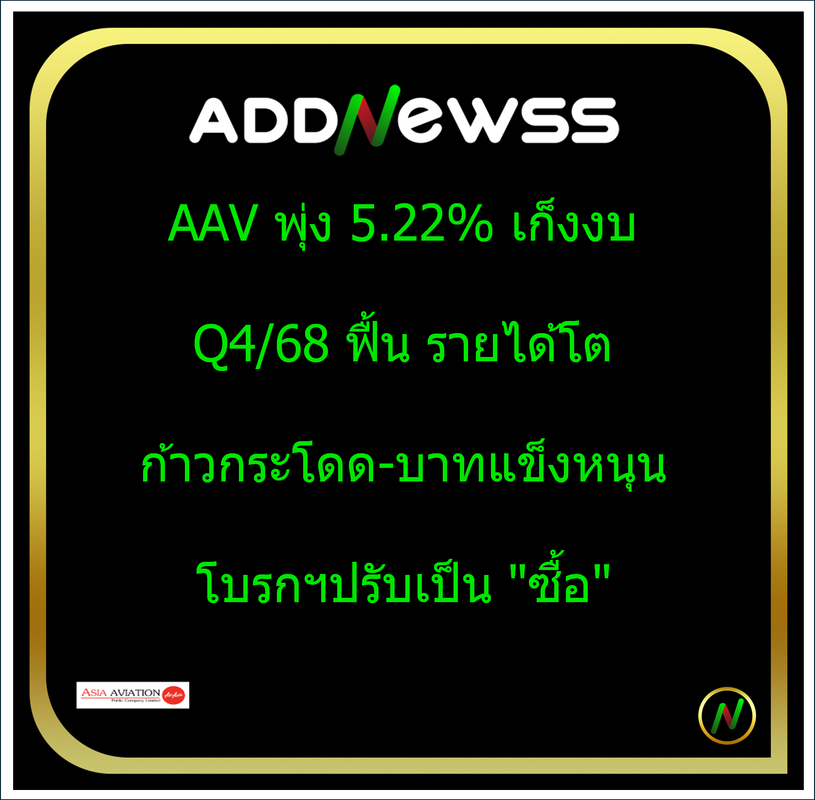 IQ > HILITE: AAV พุ่ง 5.22% เก็งงบ Q4/68 ฟื้น รายได้โตก้าวกระโดด-บาทแข็งหนุน โบรกฯปรับเป็น "ซื้อ"