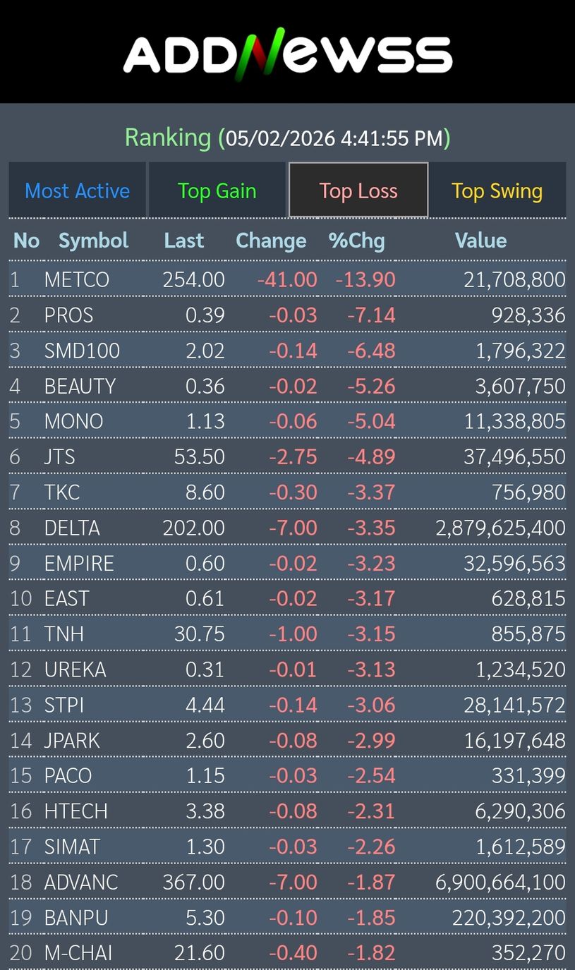 ⬇️ต่ำสุดที่ 1,338.32 / -8.22 จุด