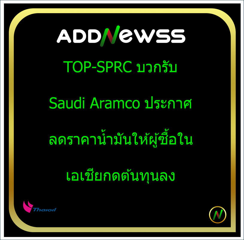IQ > HILITE: TOP-SPRC บวกรับ Saudi Aramco ประกาศลดราคาน้ำมันให้ผู้ซื้อในเอเชียกดต้นทุนลง