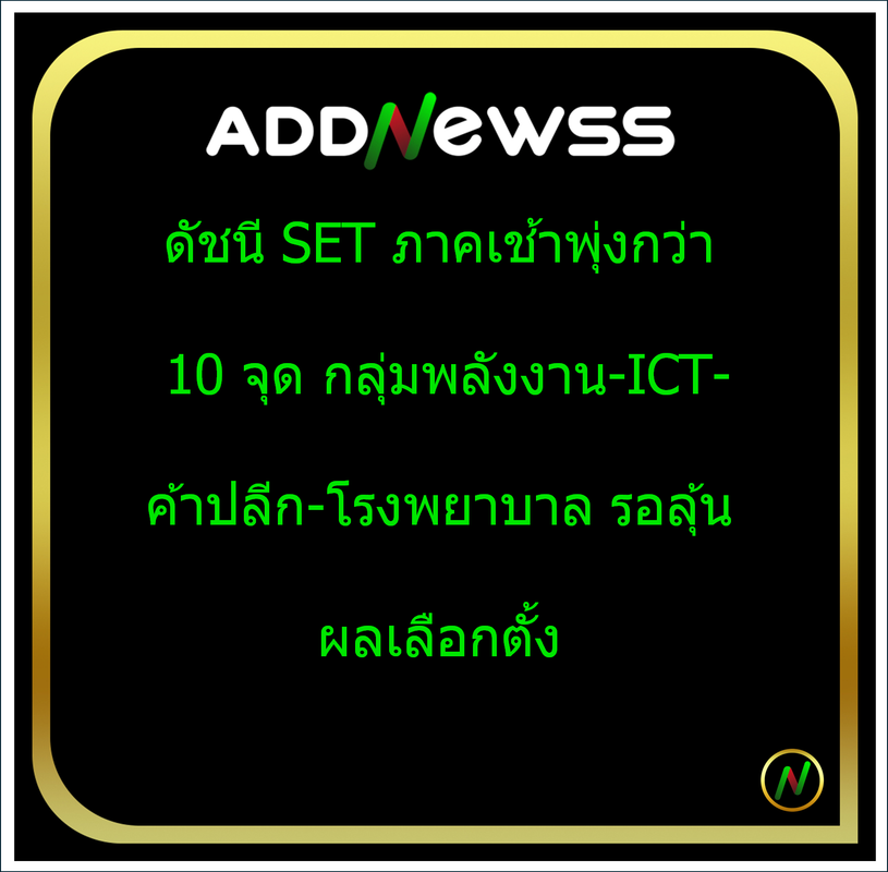 IQ > ดัชนี SET ภาคเช้าพุ่งกว่า 10 จุด กลุ่มพลังงาน-ICT-ค้าปลีก-โรงพยาบาล รอลุ้นผลเลือกตั้ง