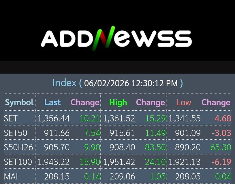 📊เช้าวันนี้ดัชนีตลาดหุ้นไทยปิดที่ 1,356.44 เพิ่มขึ้น +10.21 จุด หรือ +0.76%