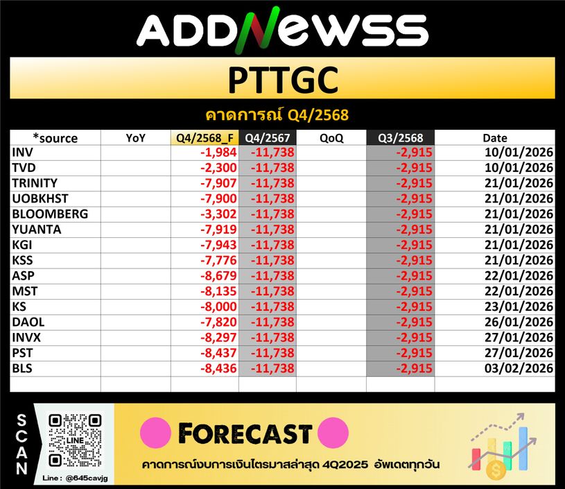 ขณะที่แนวโน้มของไตรมาส 1/69 คาดว่าจะเห็นการฟื้นตัว QoQ หลังโรงกลั่นกลับมาผลิตตามปกติ อีกทั้งคาดว่าราคาผลิตภัณฑ์ปรับลงจำกัด ทำให้จะได้ประโยชน์เต็มที่จากการใช้อีเทนมาผลิต อีกทั้งยังมีกาไรจากการทำ Asset monetization เข้ามาหนุนต่อผลการดำเนินงาน