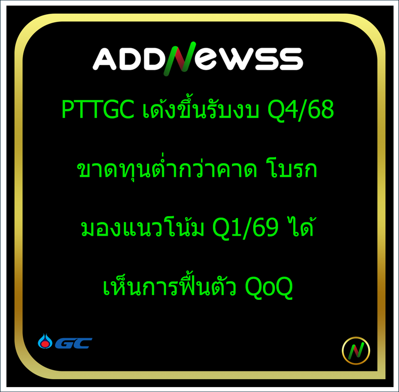 IQ > HILITE: PTTGC เด้งขึ้นรับงบ Q4/68 ขาดทุนต่ำกว่าคาด โบรกมองแนวโน้ม Q1/69 ได้เห็นการฟื้นตัว QoQ