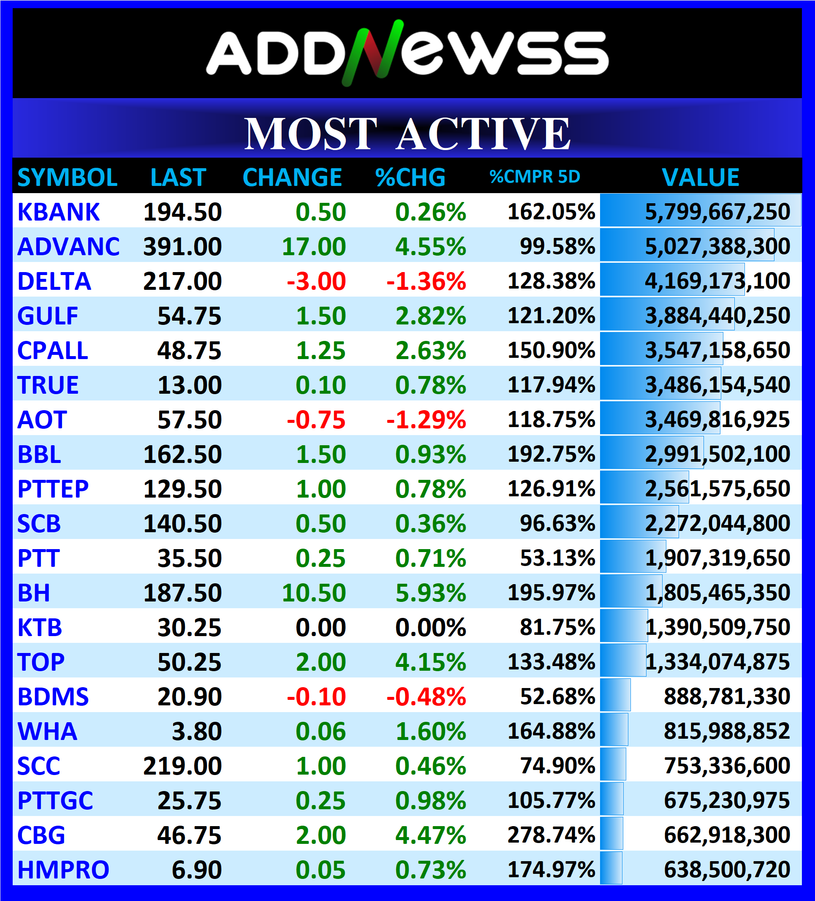 ADVANC : 🟢+17.00 ฿5,027,388,300