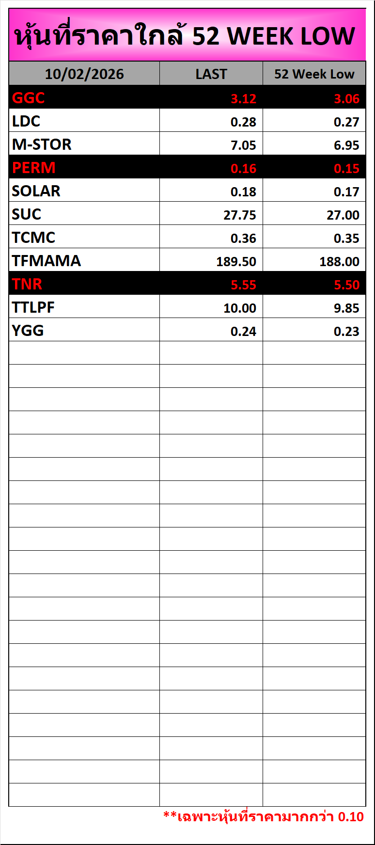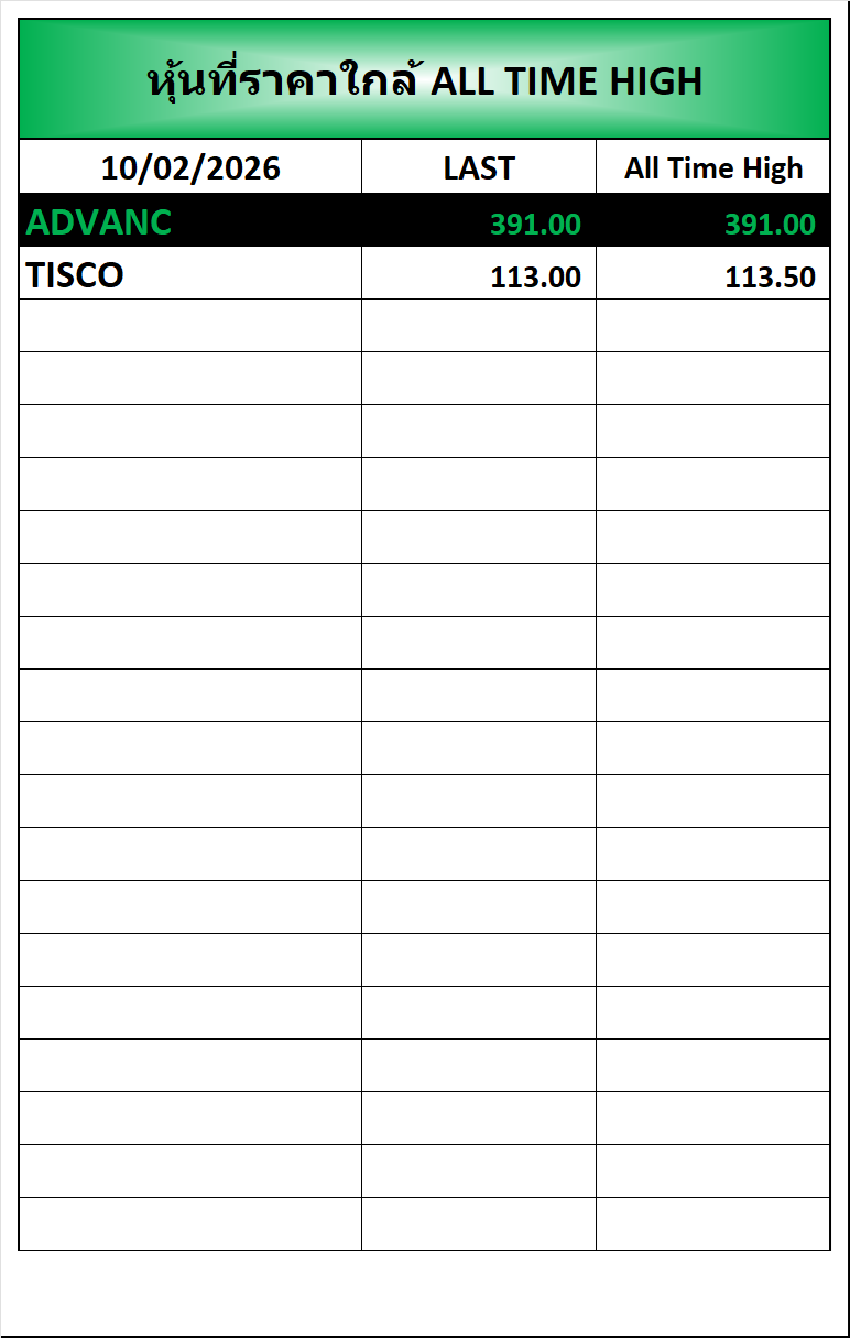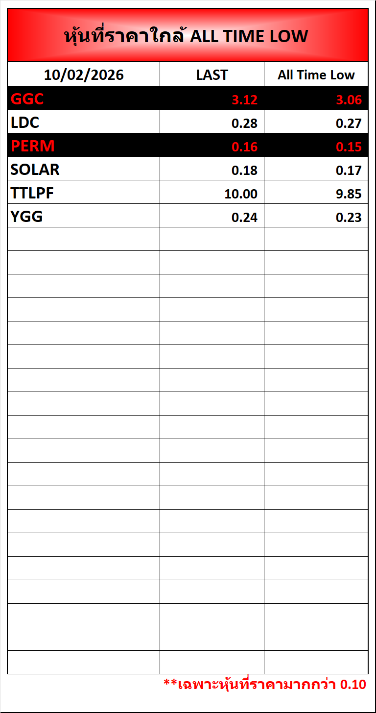 ⭐🔥หุ้นที่ราคาใกล้ ALL TIME 🟢High 🔴Low 📅10/02/2026