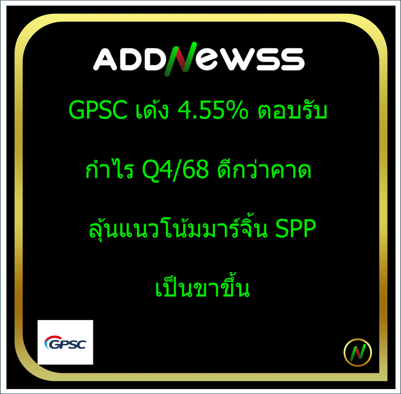 HILITE: GPSC เด้ง 4.55% ตอบรับกำไร Q4/68 ดีกว่าคาด ลุ้นแนวโน้มมาร์จิ้น SPP เป็นขาขึ้น