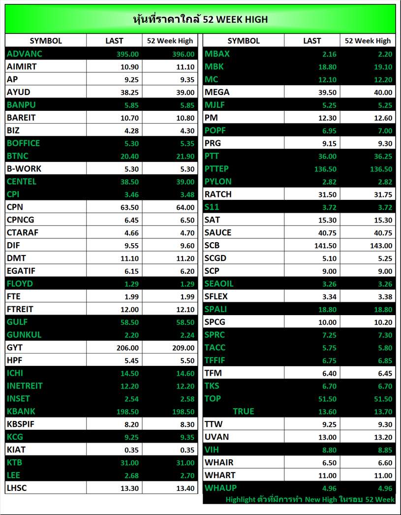 ⭐หุ้นที่ราคาใกล้ 52 Week 🟢High 🔴Low 📅12/02/2026