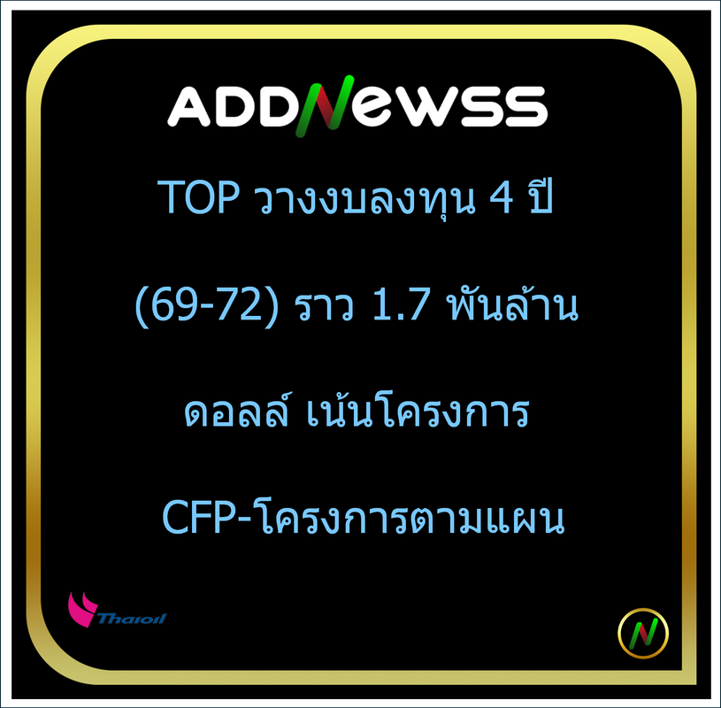 IQ > -TOP วางงบลงทุน 4 ปี (69-72) ราว 1.7 พันล้านดอลล์ เน้นโครงการ CFP-โครงการตามแผน