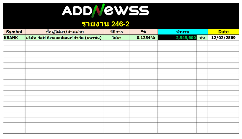 GULF ซื้อ KBANK เพิ่ม 2,949,600 หุ้น รวมถือ 10.0351%
