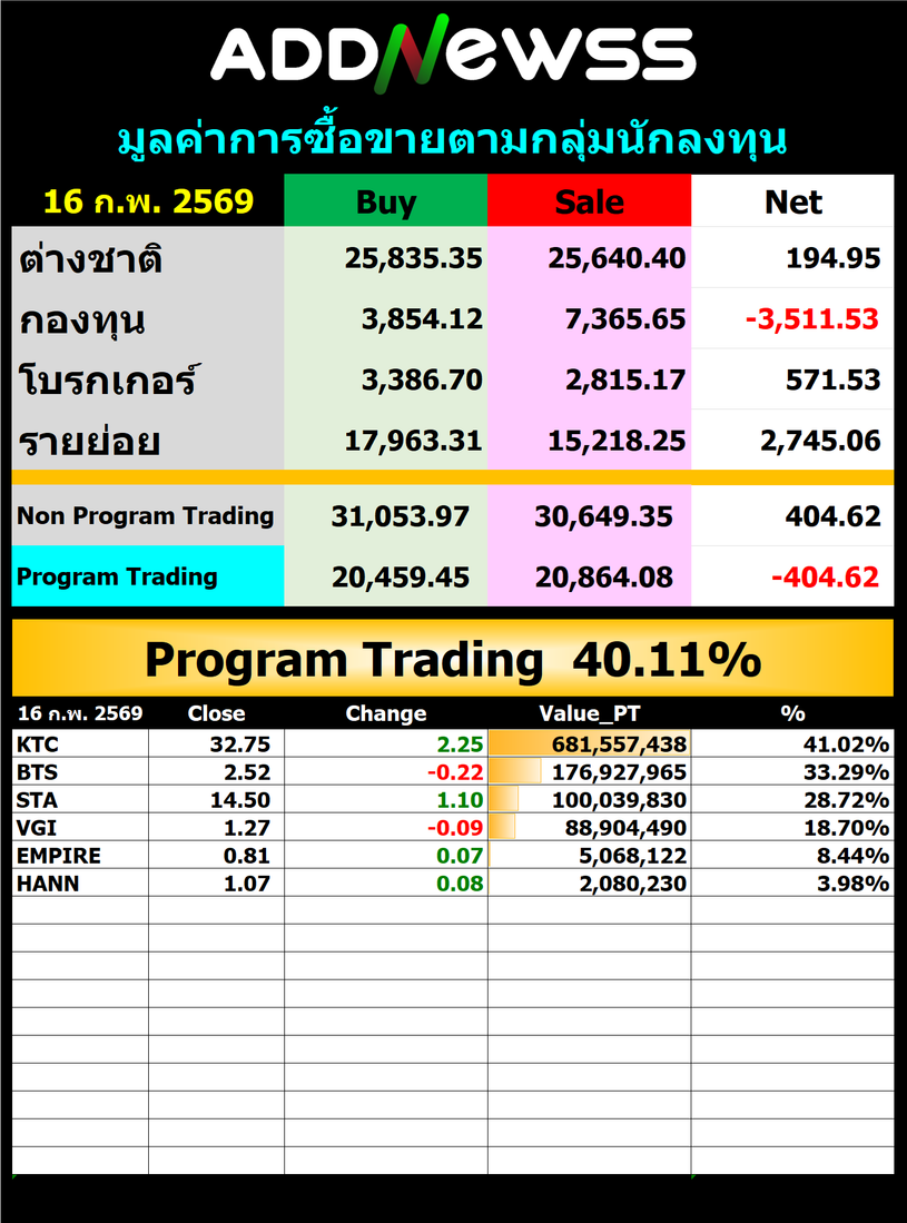 🔥🔥สรุปยอด 🟢ซื้อ🟢🔴 ขาย🔴 📅16/02/2026 📅 2026-02-16 18:36 ✎ administrator 🗇 SUM 👍 - แชร์โพสต์นี้ 🔥🔥สรุปยอด 🟢ซื้อ🟢🔴 ขาย🔴 📅16/02/2026