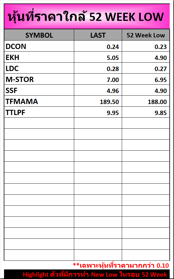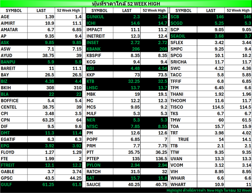 ⭐หุ้นที่ราคาใกล้ 52 Week 🟢High 🔴Low 📅17/02/2026