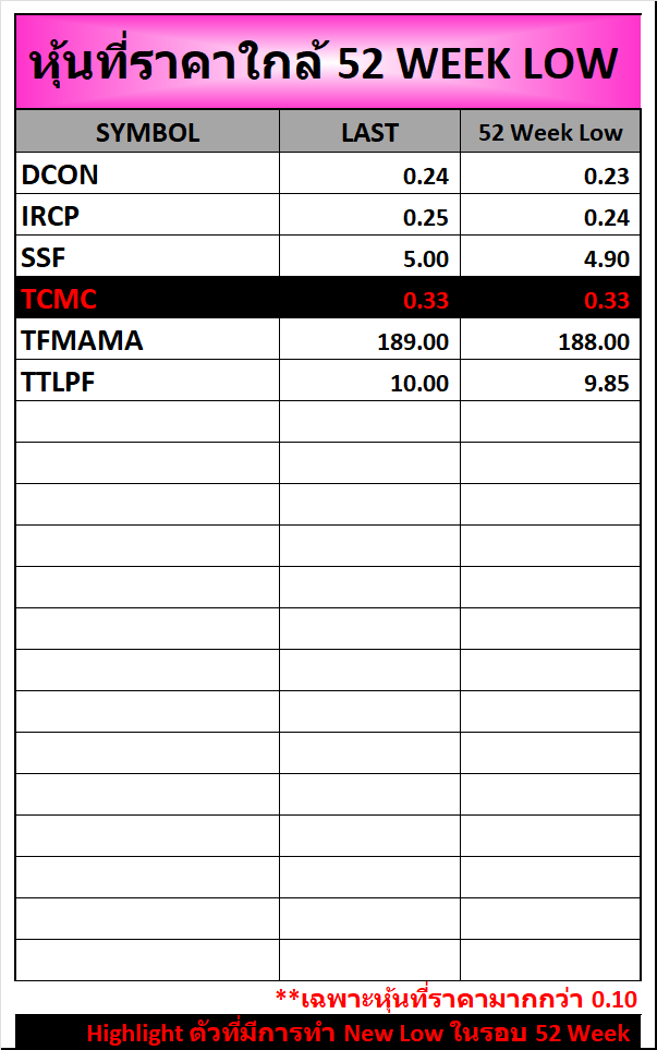 ⭐หุ้นที่ราคาใกล้ 52 Week 🟢High 🔴Low 📅18/02/2026