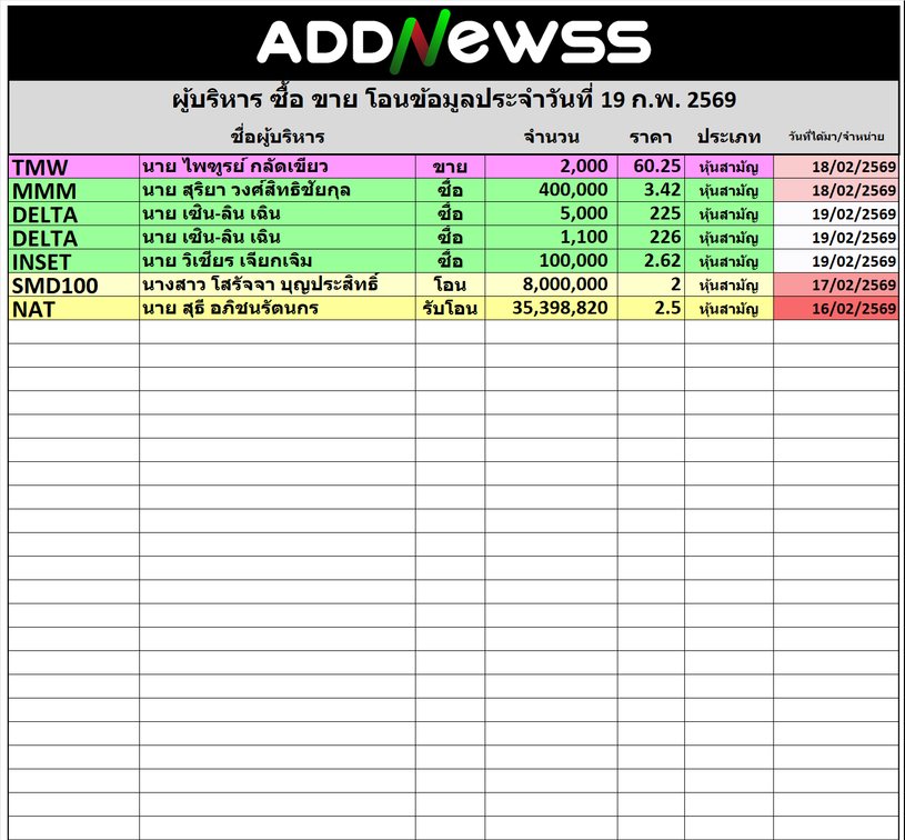 🔥🔥สรุปผู้บริหาร ซื้อ ขาย โอน