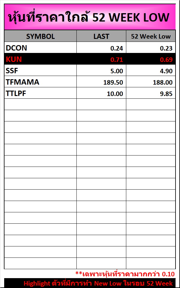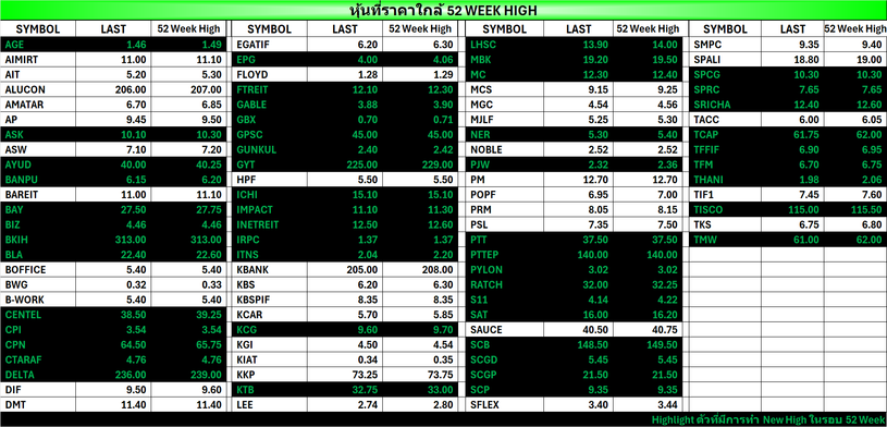 ⭐หุ้นที่ราคาใกล้ 52 Week 🟢High 🔴Low 📅19/02/2026