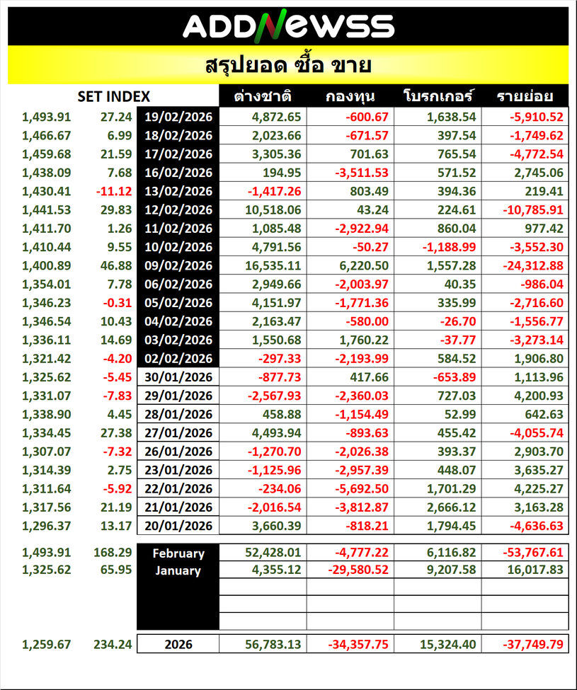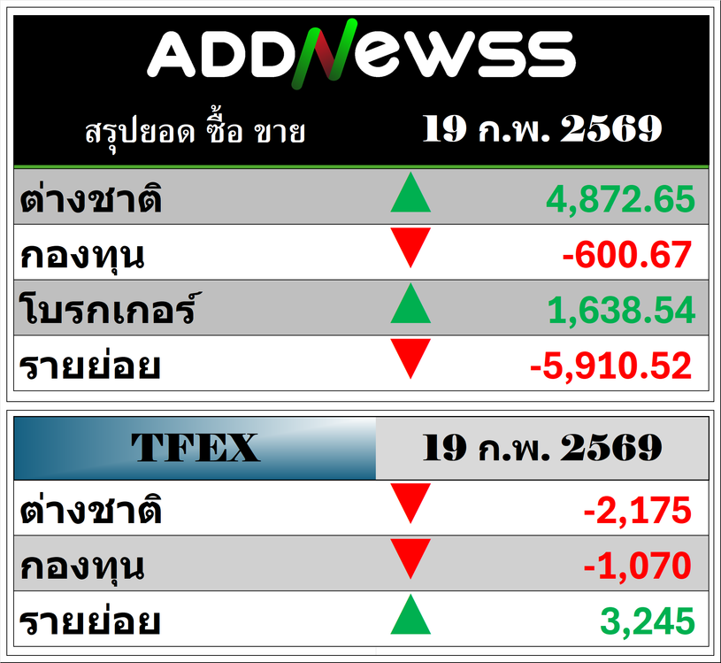 🔥🔥สรุปยอด 🟢ซื้อ🟢🔴 ขาย🔴 📅19/02/2026 📅 2026-02-19 18:50 ✎ administrator 🗇 SUM 👍 - แชร์โพสต์นี้ 🔥🔥สรุปยอด 🟢ซื้อ🟢🔴 ขาย🔴 📅19/02/2026