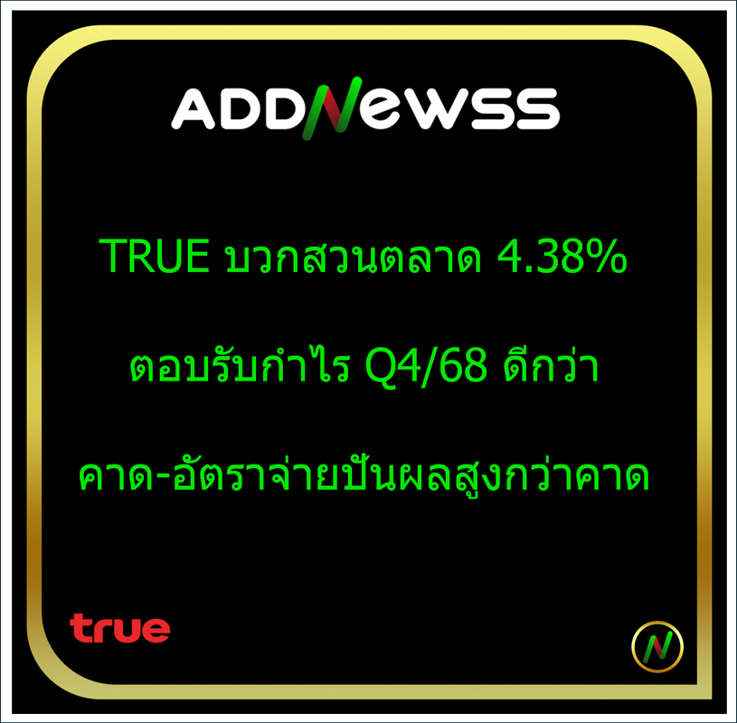 IQ > HILITE: TRUE บวกสวนตลาด 4.38% ตอบรับกำไร Q4/68 -อัตราจ่ายปันผลสูงกว่าคาด