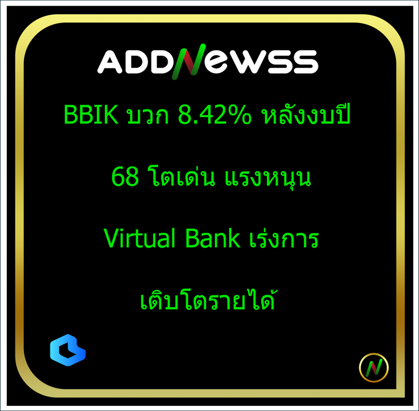 IQ > HILITE: BBIK บวก 8.42% หลังงบปี 68 โตเด่น แรงหนุน Virtual Bank เร่งการเติบโตรายได้