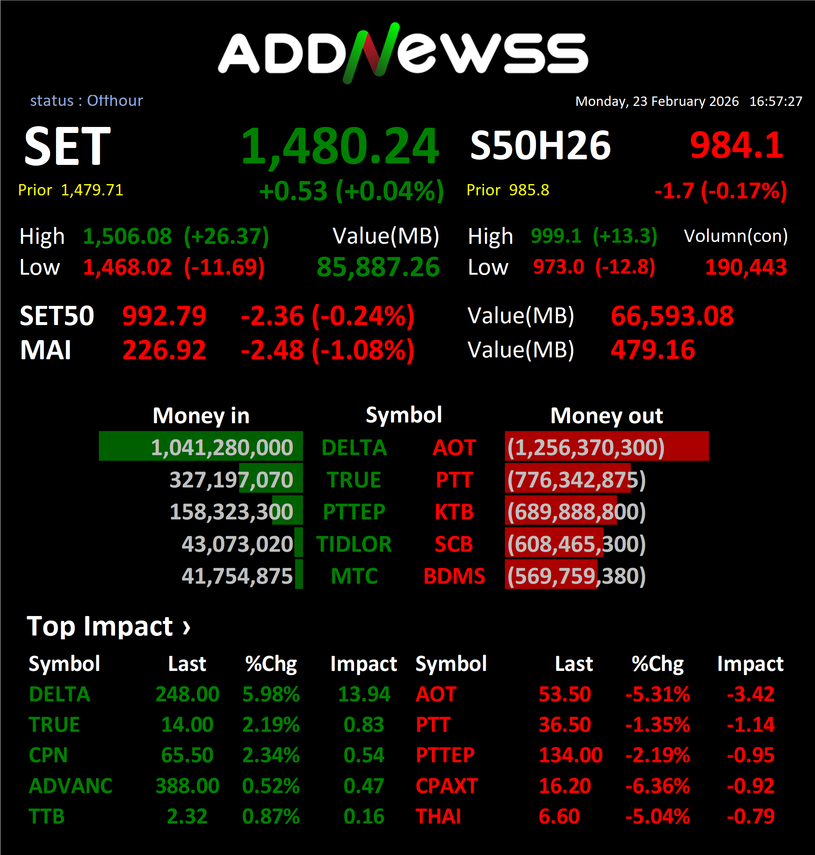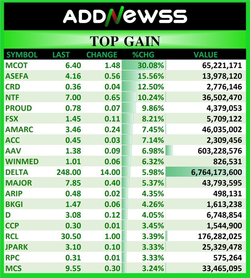 DELTA : 🟢+14.00 ฿6,764,173,600