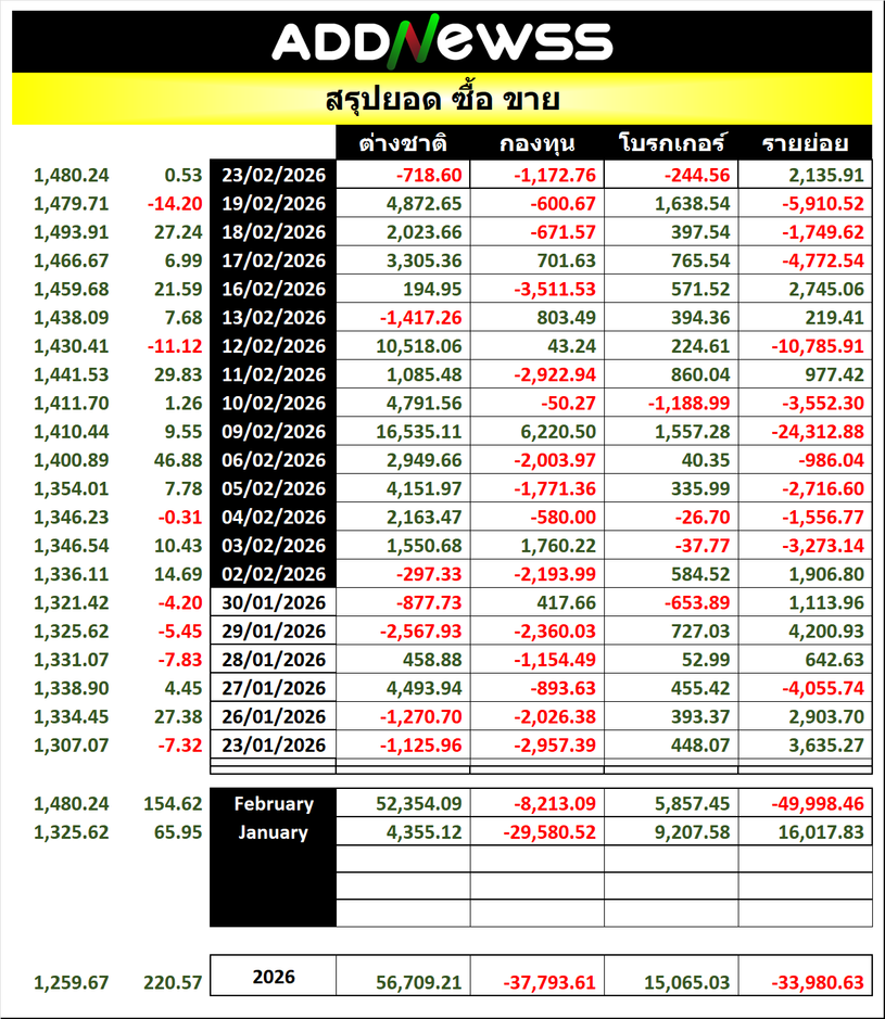 🔥🔥สรุปยอด 🟢ซื้อ🟢🔴 ขาย🔴 📅23/02/2026 📅 2026-02-23 17:26 ✎ administrator 🗇 SUM 👍 - แชร์โพสต์นี้ 🔥🔥สรุปยอด 🟢ซื้อ🟢🔴 ขาย🔴 📅23/02/2026