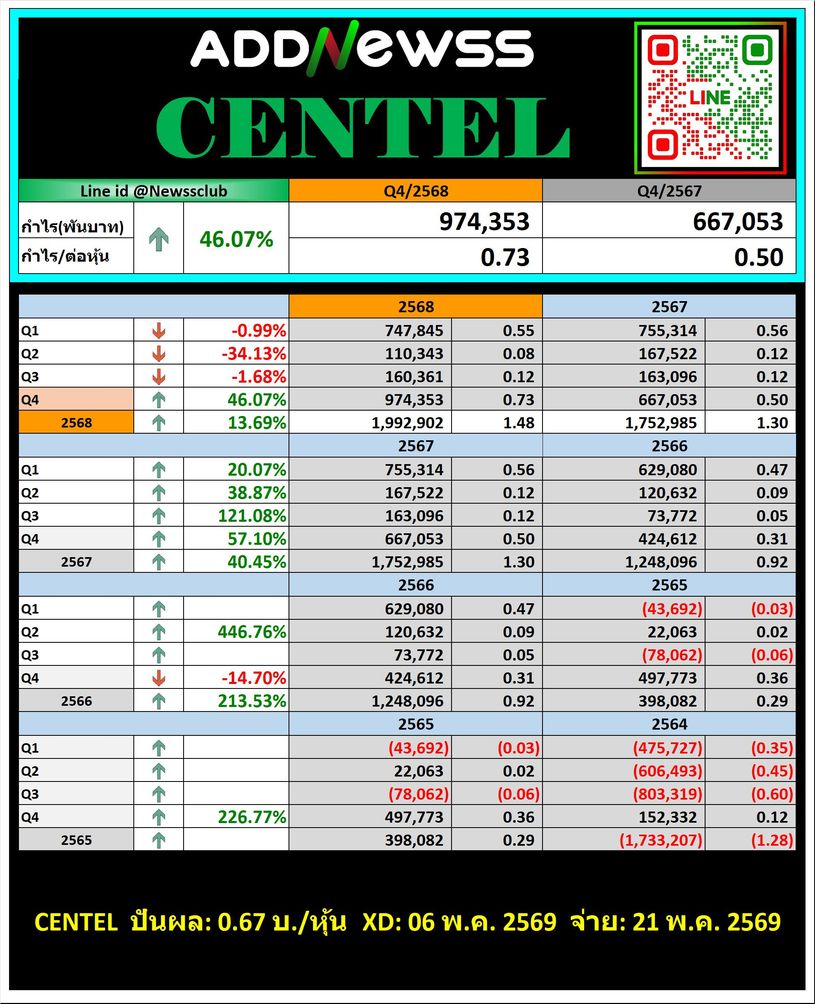 🔥 CENTEL Q4/2568 + คาดการณ์