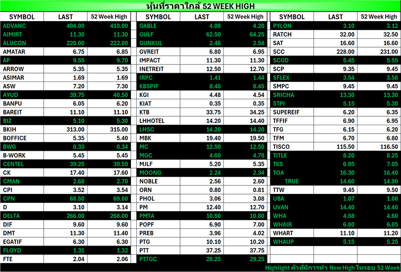 ⭐หุ้นที่ราคาใกล้ 52 Week 🟢High 🔴Low 📅25/02/2026