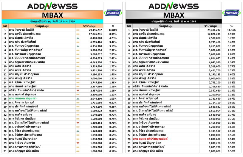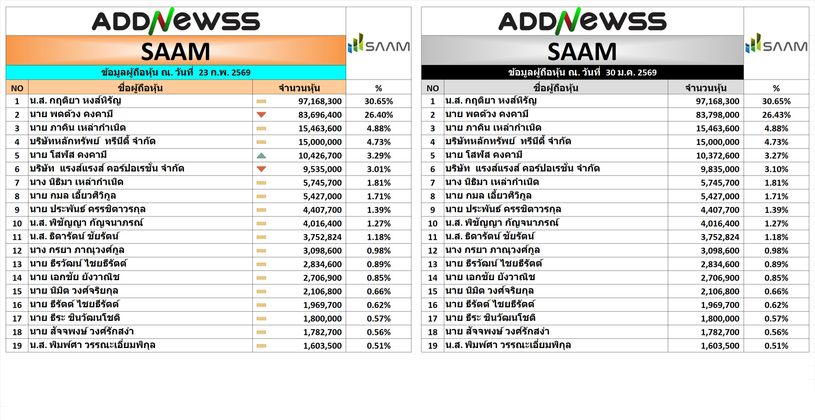 👨💼👩💼หุ้นที่มีรายงานผู้ถือหุ้นใหญ่เปลี่ยนแปลง พิมพ์ดูได้ที่ Line ครับ