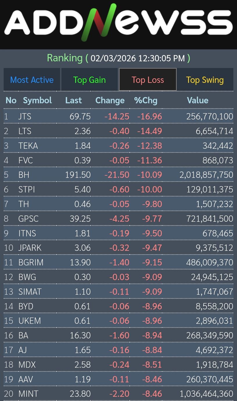 ⬇️ต่ำสุดที่ 1,489.36 / -38.90 จุด