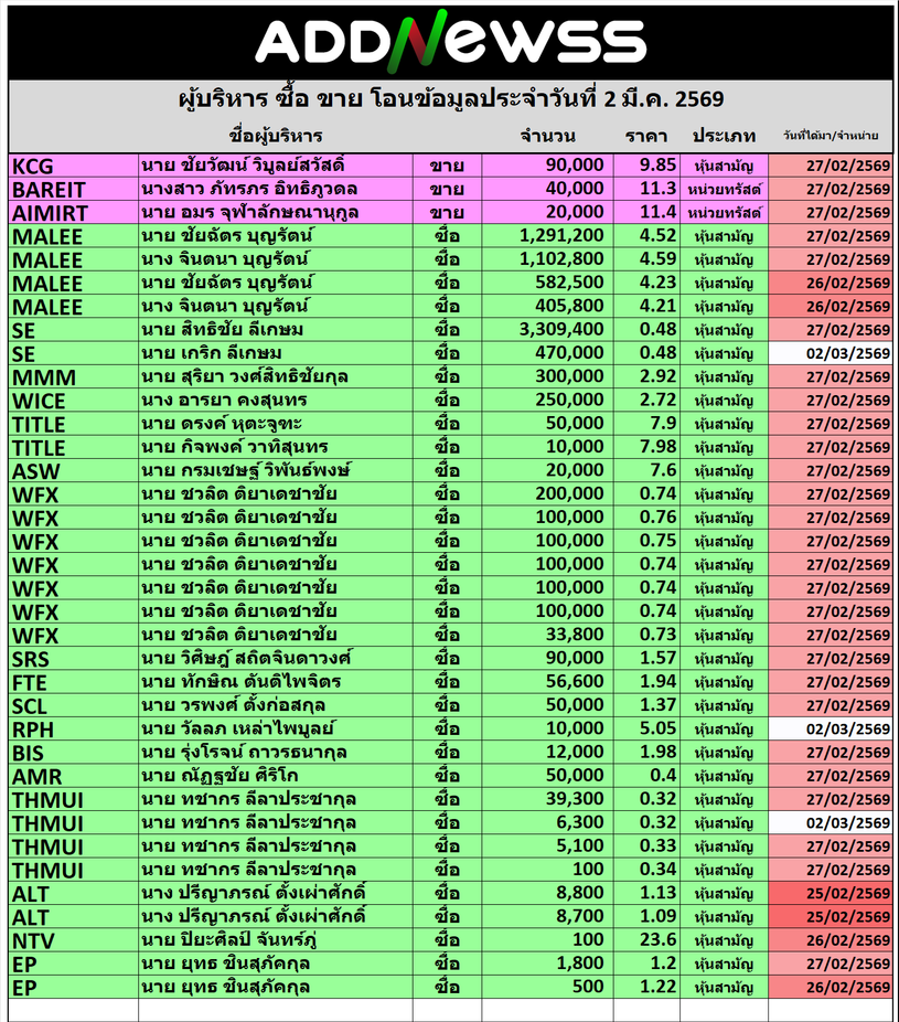 🔥🔥สรุปผู้บริหาร ซื้อ ขาย โอน