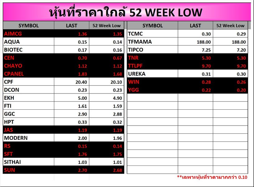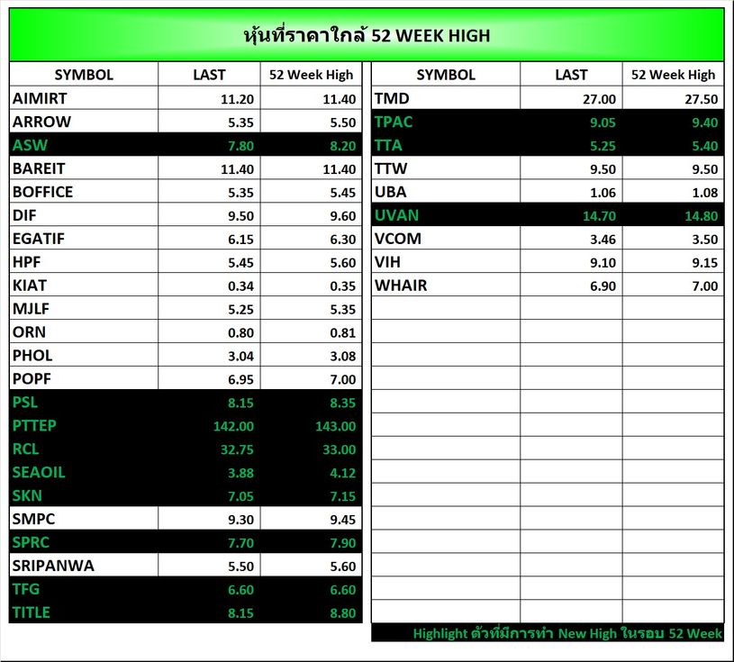 ⭐หุ้นที่ราคาใกล้ 52 Week 🟢High 🔴Low 📅02/03/2026