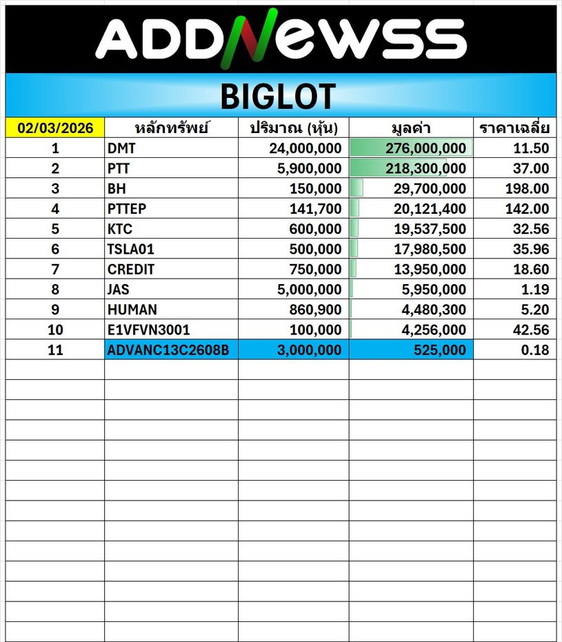 PTT : 🔻-0.25 ฿5,670,444,025
