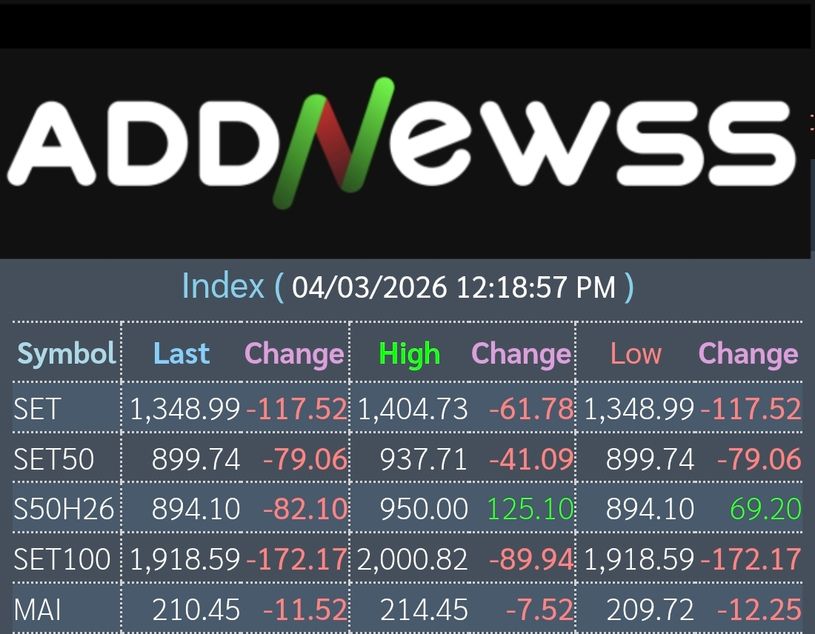 📊เช้าวันนี้ดัชนีตลาดหุ้นไทยปิดที่ 1,348.99 ลดลง -117.52 จุด หรือ -8.01%
