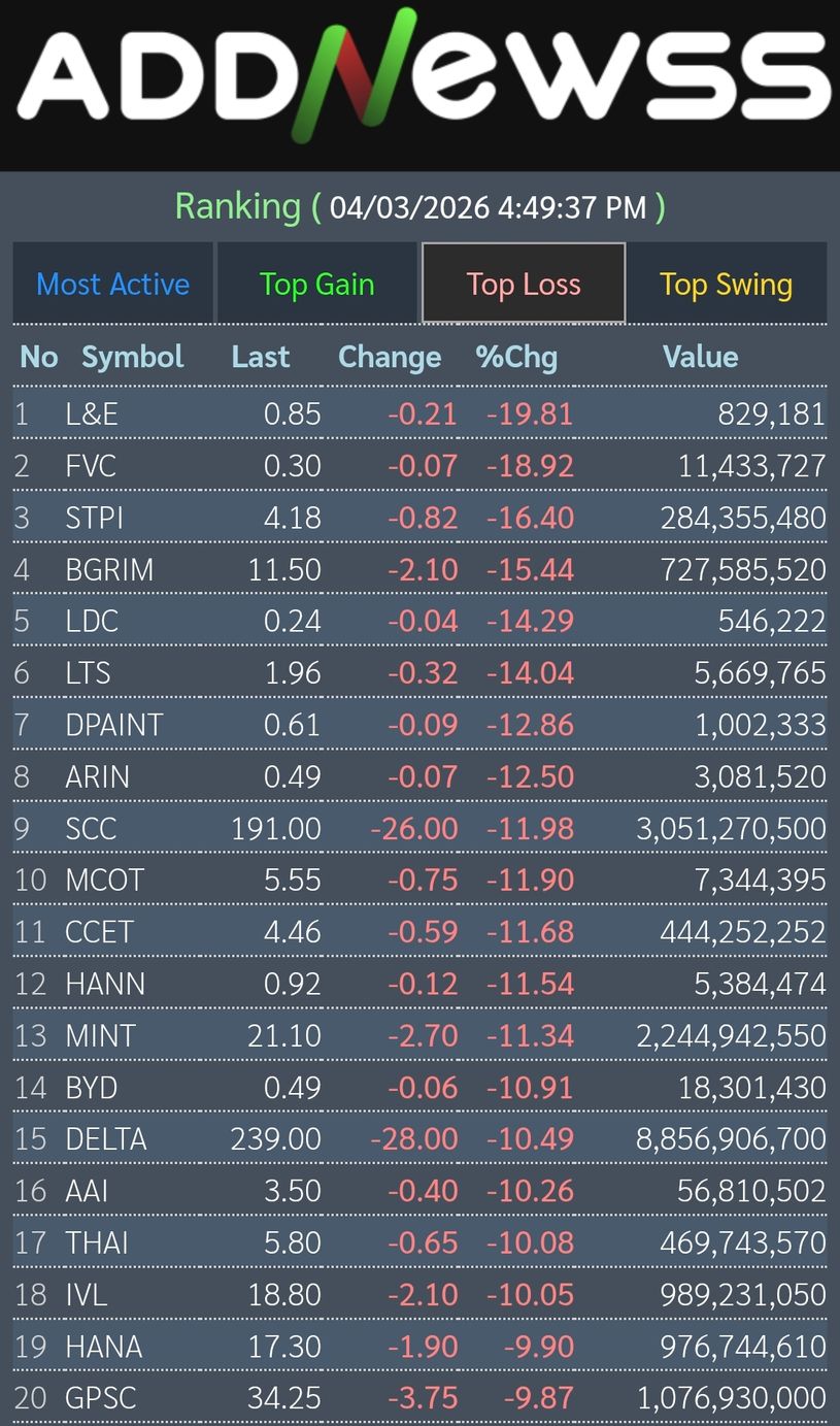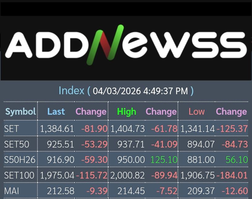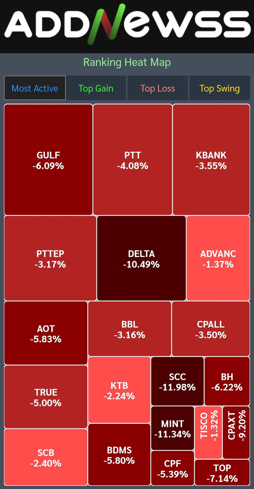 📊เย็นวันนี้ดัชนีตลาดหุ้นไทยปิดที่ 1,384.61 ลดลง -81.90 จุด หรือ -5.58%
