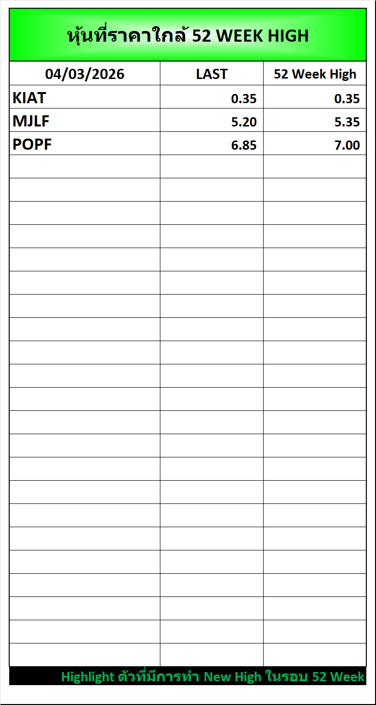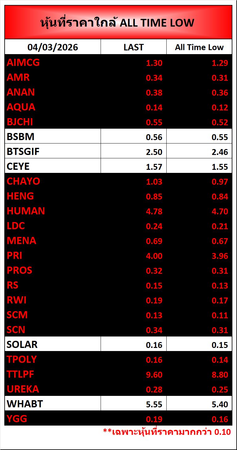 ⭐🔥หุ้นที่ราคาใกล้ ALL TIME 🟢High 🔴Low 📅04/03/2026