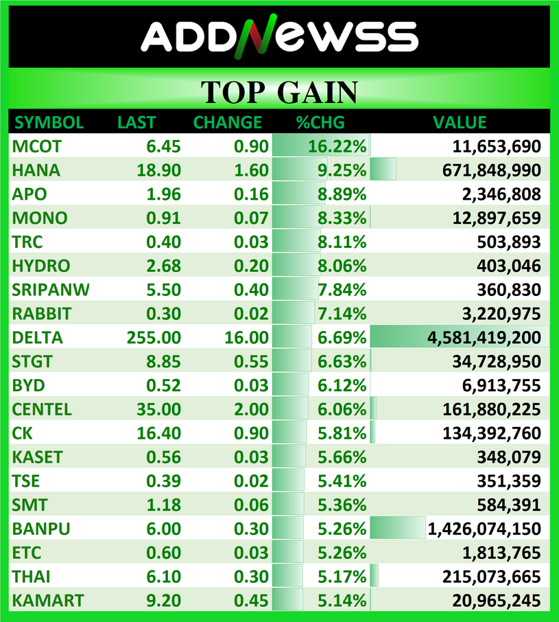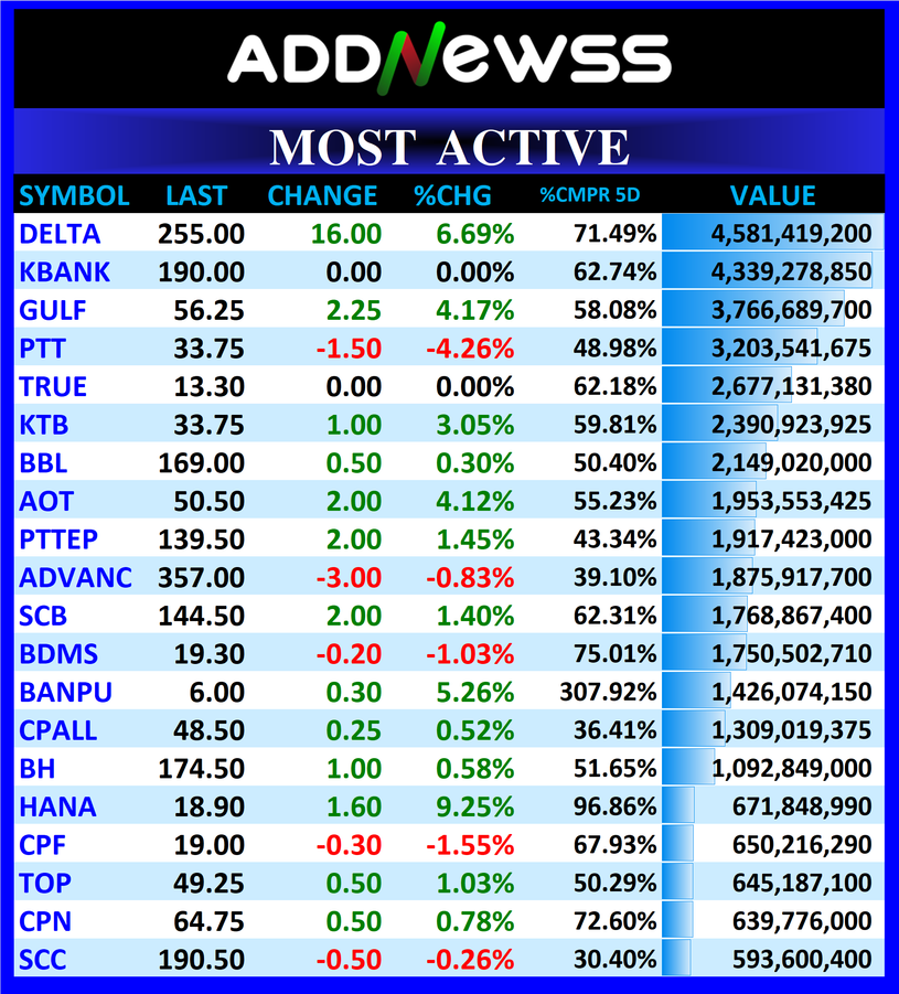 DELTA : 🟢+16.00 ฿4,581,419,200