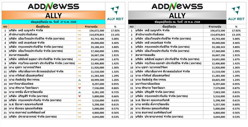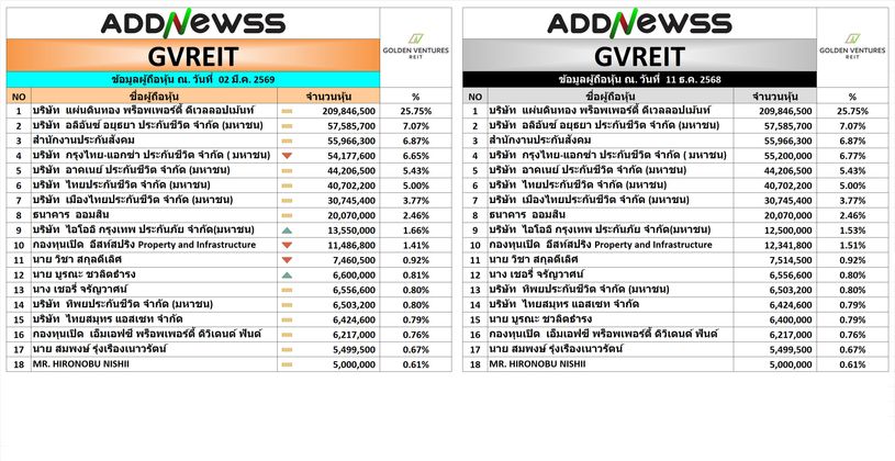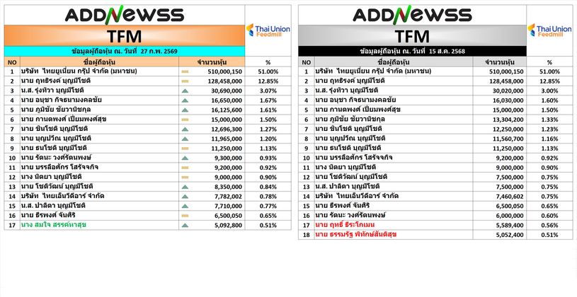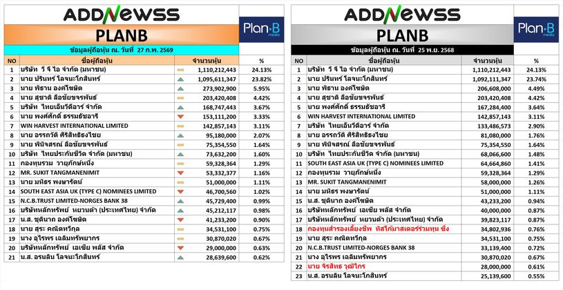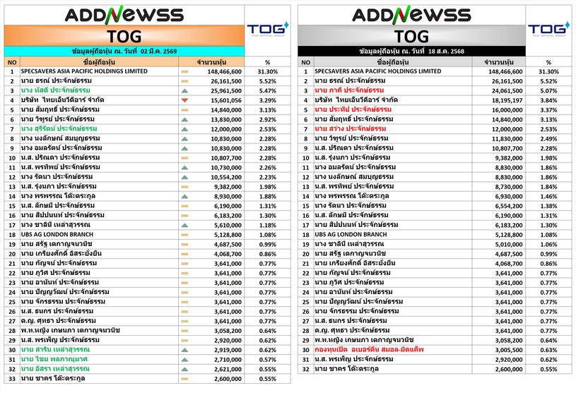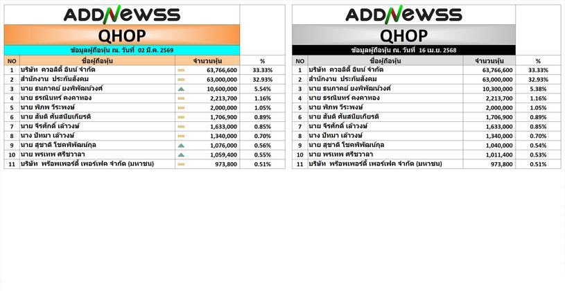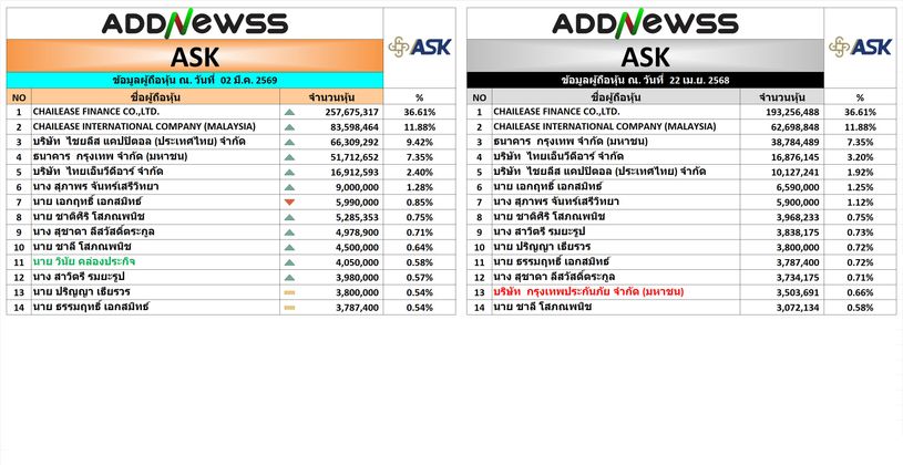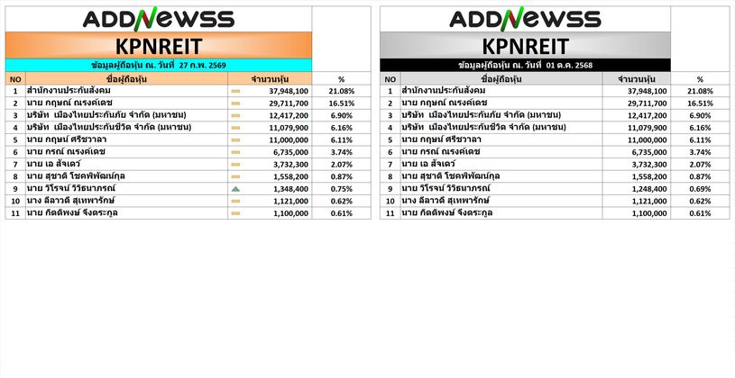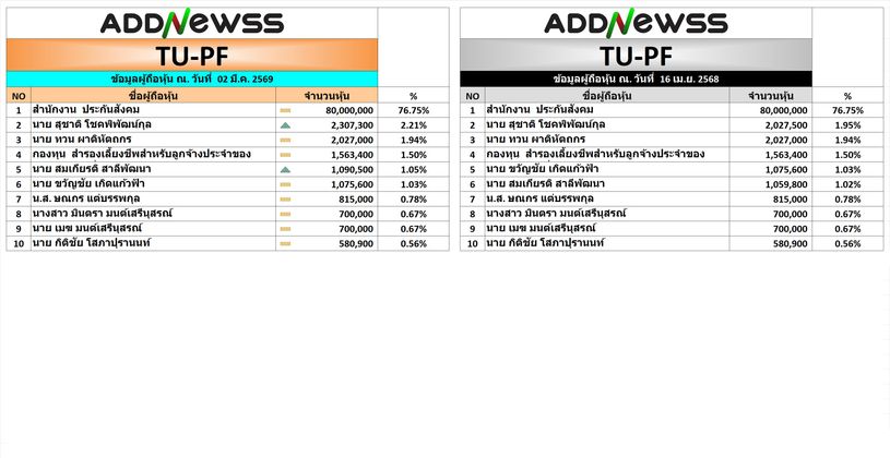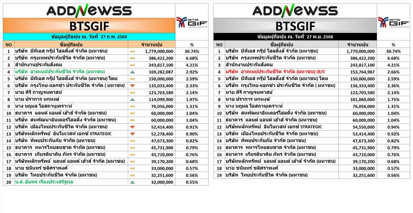 👨💼👩💼หุ้นที่มีรายงานผู้ถือหุ้นใหญ่เปลี่ยนแปลง พิมพ์ดูได้ที่ Line ครับ