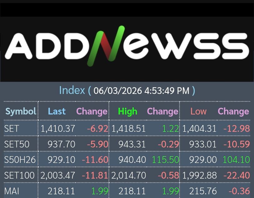 📊เย็นวันนี้ดัชนีตลาดหุ้นไทยปิดที่ 1,410.37 ลดลง -6.92 จุด หรือ -0.49%