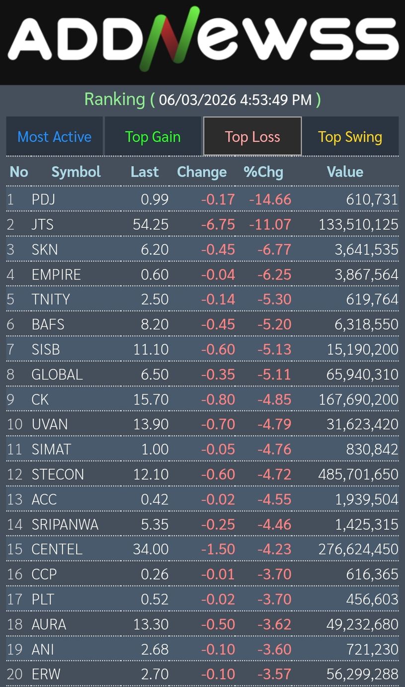 ⬇️ต่ำสุดที่ 1,404.31 / -12.98 จุด
