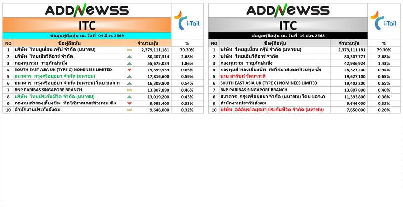 📊 ITC ผู้ถือหุ้นใหญ่มีการเปลี่ยนแปลง