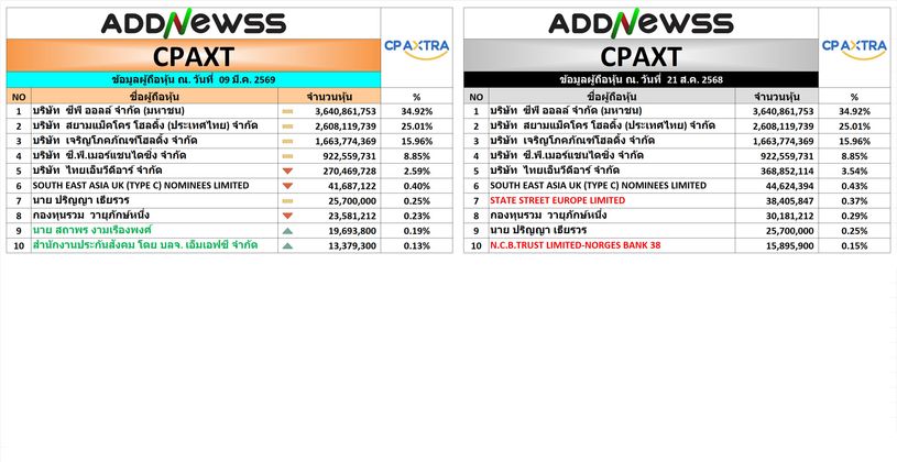 📊 CPAXT ผู้ถือหุ้นใหญ่มีการเปลี่ยนแปลง