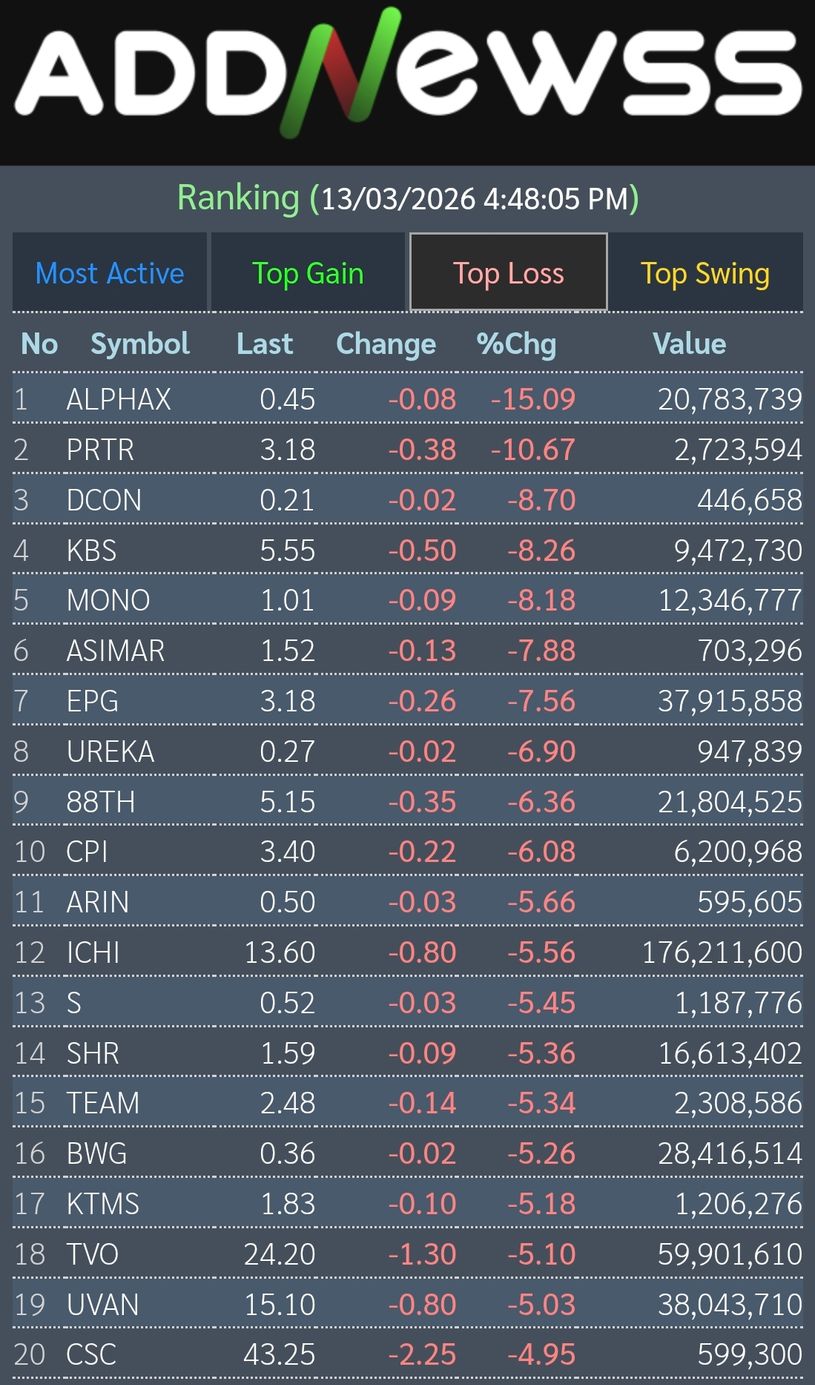 ⬇️ต่ำสุดที่ 1,404.45 / -25.35 จุด