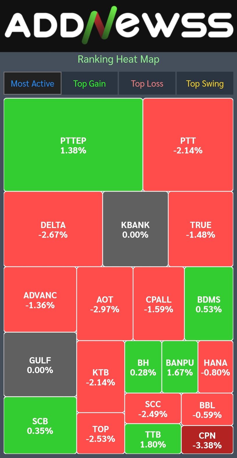 📊เย็นวันนี้ดัชนีตลาดหุ้นไทยปิดที่ 1,409.35 ลดลง -20.45 จุด หรือ -1.43%