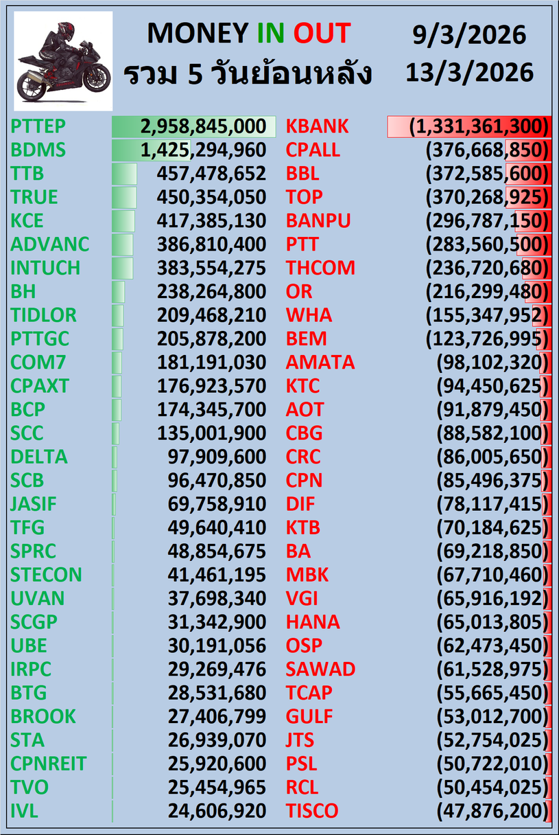 💸MONEY 🟢IN 🔴OUT 1 , 5 , 10 วันย้อนหลัง