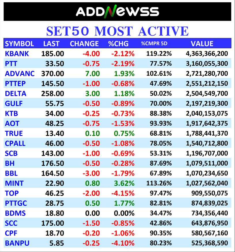 ADVANC : 🟢+7.00 ฿2,721,280,700