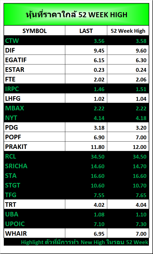 ⭐หุ้นที่ราคาใกล้ 52 Week 🟢High 🔴Low 📅18/03/2026