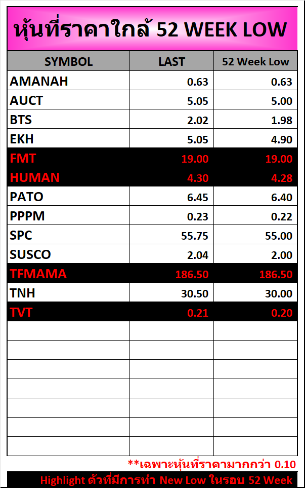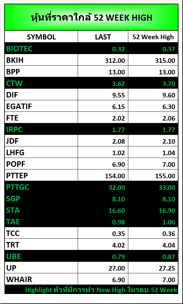 ⭐หุ้นที่ราคาใกล้ 52 Week 🟢High 🔴Low 📅20/03/2026