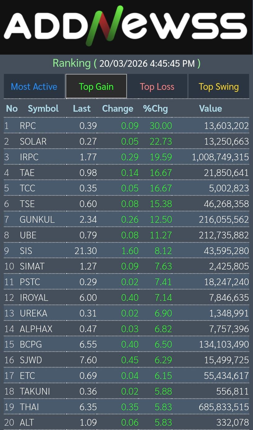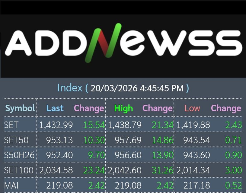 📊เย็นวันนี้ดัชนีตลาดหุ้นไทยปิดที่ 1,432.99 เพิ่มขึ้น +15.54 จุด หรือ +1.10%